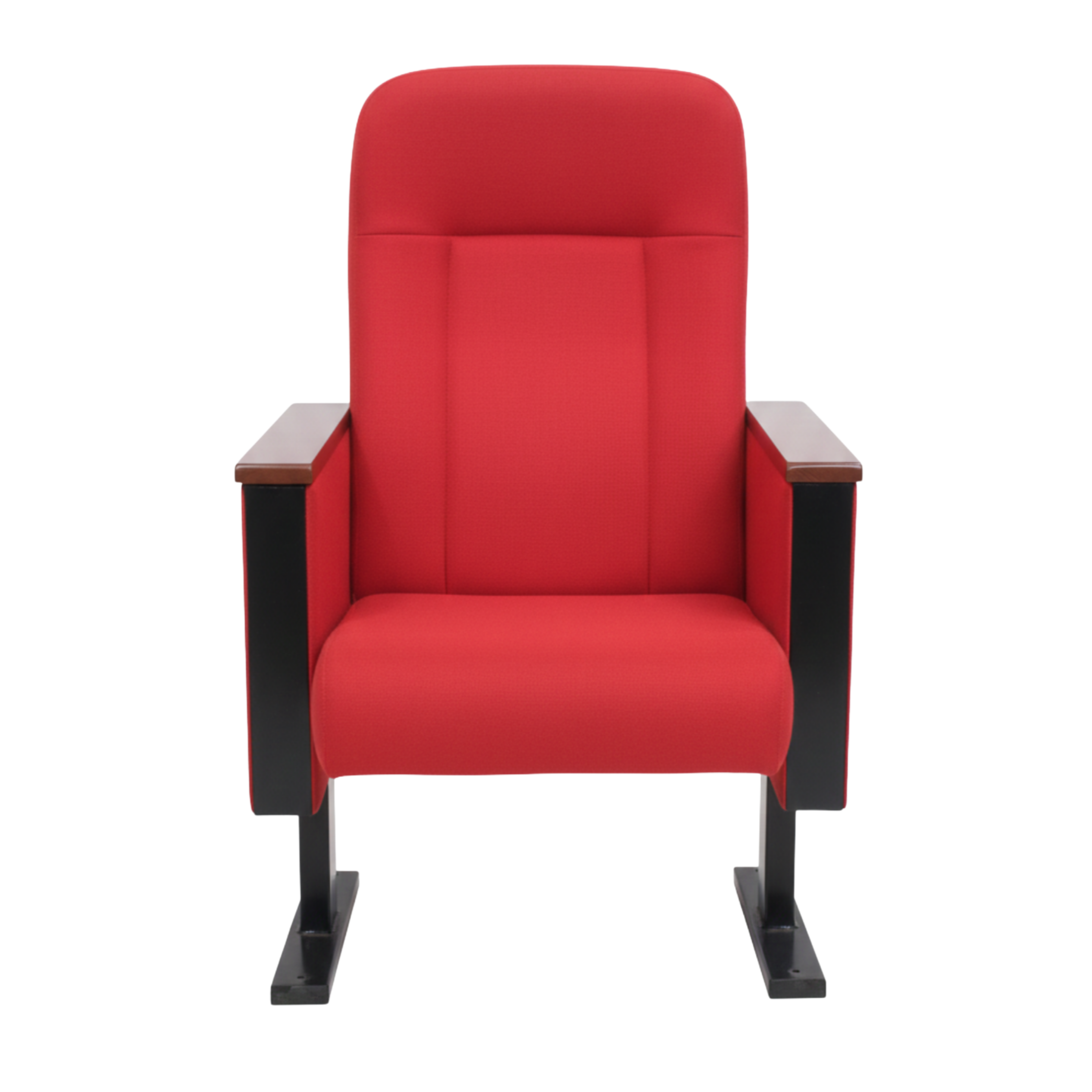 Add comfort and elegance to any professional or public space with this premium auditorium chair. Upholstered in vibrant red fabric, it features a generously cushioned seat and supportive high backrest for comfortable seating over extended periods. The strong metal frame ensures stability and durability, while fixed armrests with wooden tops add a refined, classic touch. Ideal for auditoriums, conference halls, theaters, training rooms, and waiting areas, this chair combines style, comfort, and long-lasting performance.