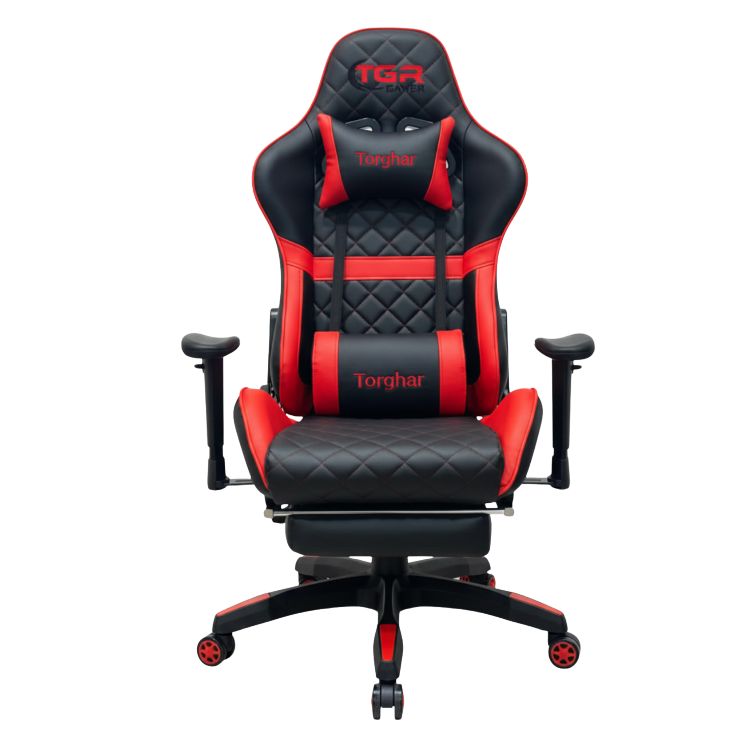 Level up your setup with the Torghar TGR Gamer Chair — built for serious gamers, streamers, and long grind sessions. Wrapped in sleek black leatherette with bold red accents, this chair combines aggressive racing-style looks with all-day comfort. The diamond-stitched padding, adjustable armrests, and ergonomic neck & lumbar support keep you locked in and comfortable whether you’re gaming, studying, or working. Designed to look powerful and feel even better.