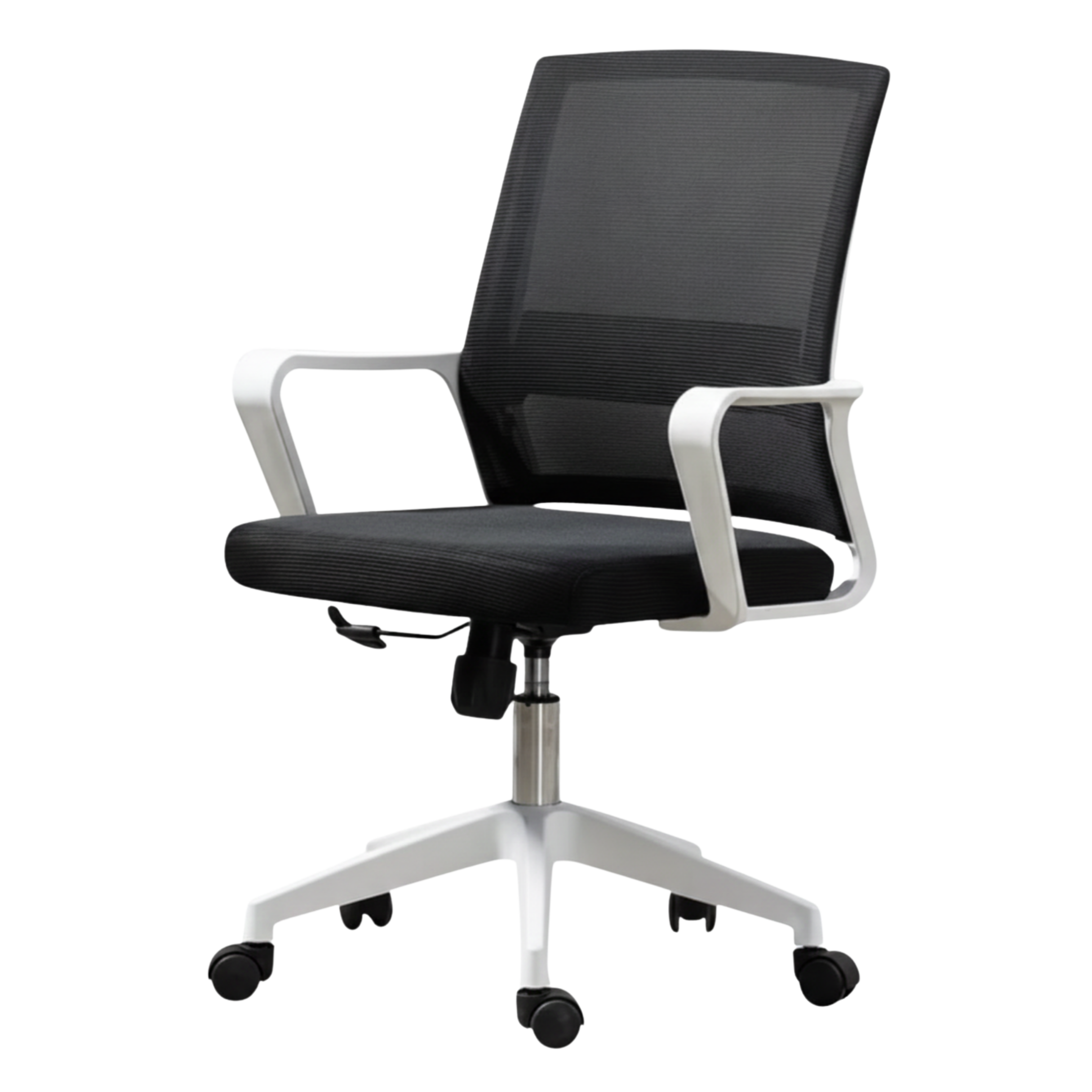 Sleek ergonomic office chair with breathable mesh back, cushioned seat, and height adjustment for daily work comfort.